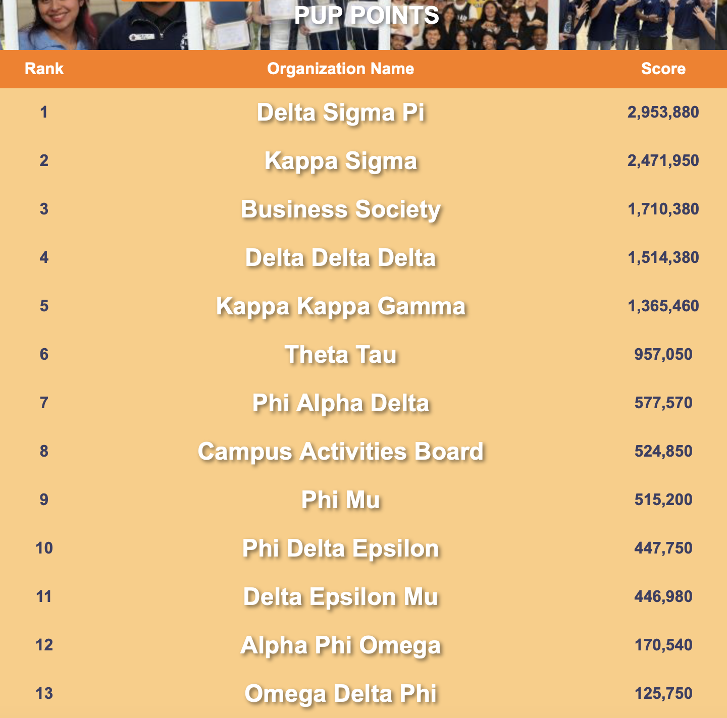| Alpha Phi Omega | 3,259,040 | 2023-2024 |